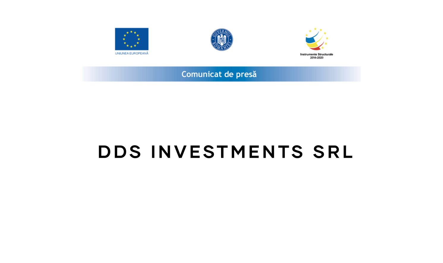 DDS INVESTMENTS SRL anunță finalizarea proiectului cu titlul ”Susținerea activității societății DDS INVESTMENTS SRL”, proiect nr. RUE M2 – 8073 înscris în cadrul Măsurii ”Granturi pentru capital de lucru”, instituită prin OUG nr. 130/2020.